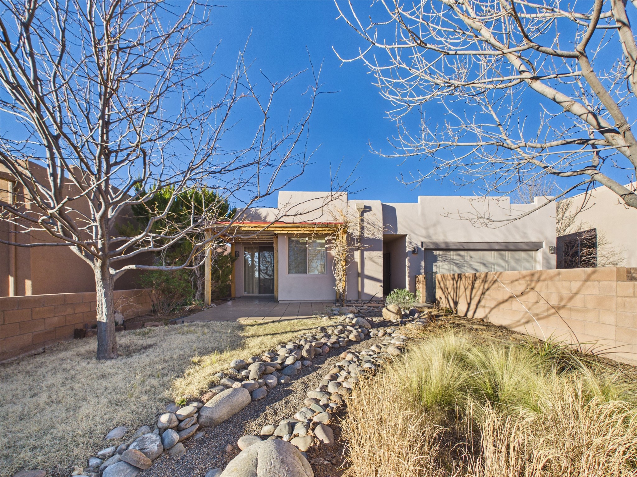 Meticulously Maintained Beauty in Rancho Viejo -- This well-appointed 2-bedroom, 2-bath home in Santa Fe offers thoughtful design and comfort. The open-concept living and dining area features high ceilings and a gas fireplace, while in-floor radiant heat provides consistent warmth throughout. The kitchen includes a gas stove, and a convenient washer and dryer are located in-unit. An office space can be converted to a third bedroom to suit your needs. Outside, a beautifully landscaped courtyard complements the desirable neighborhood, and a 2-car garage provides ample parking and storage.