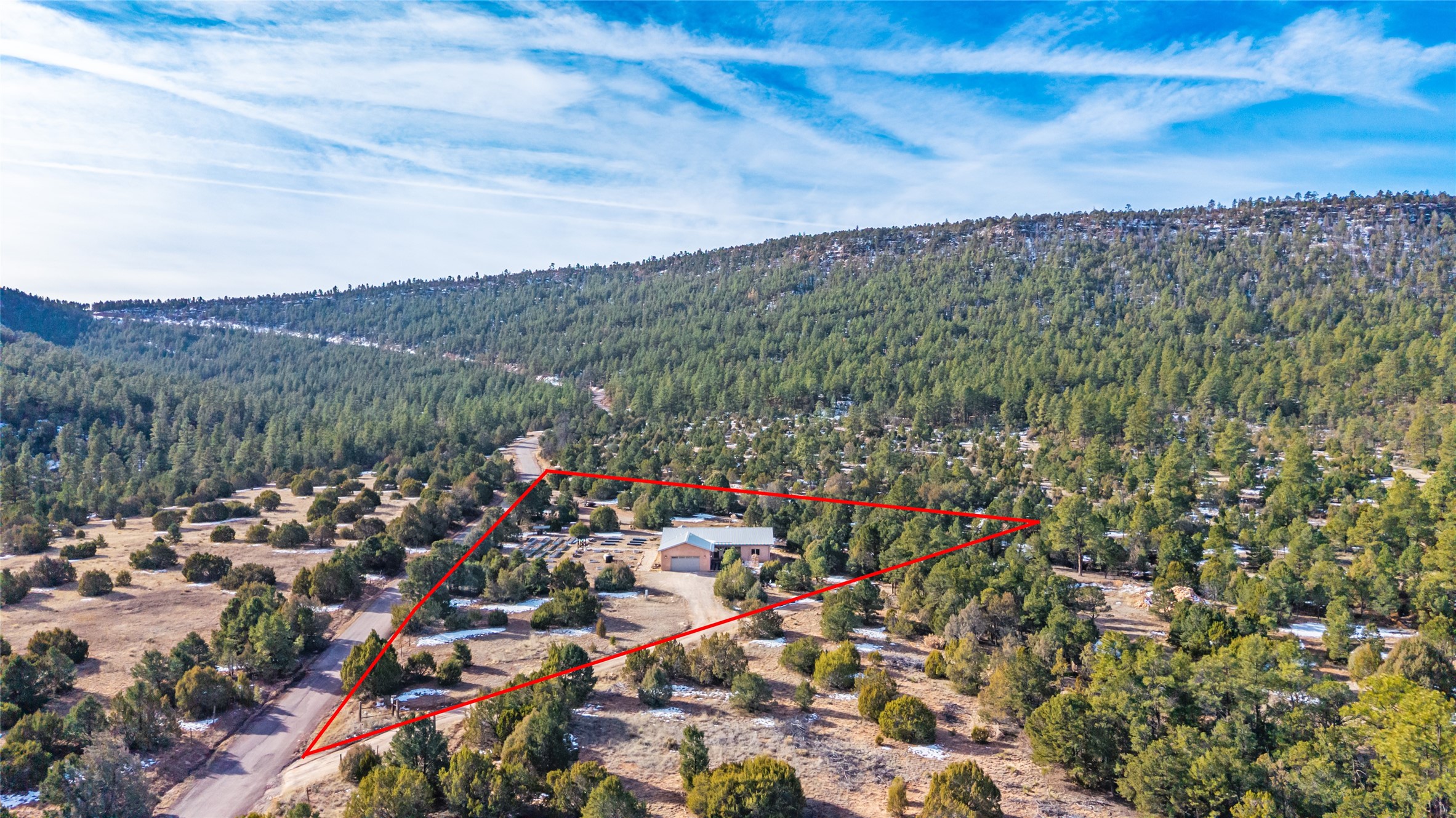 Freshly prepared for spring, this well-maintained property has been thoughtfully refreshed and is move-in ready. Recent updates include fresh interior paint, a newly installed septic system (March 2026) with a two-year warranty, deep-cleaned carpets, cleared personal property, and spruced raised garden beds. The sellers have recently moved out and are presenting a timely opportunity for the next owner. Located at the base of Rowe Mesa, this ranch-style home sits on approximately 3.7 acres of mostly level, usable land, offering expansive skies, mountain views, and a sense of rural privacy--all within an approximate 30-minute drive to Santa Fe. Built in 2021, the custom home features a modern ranch aesthetic with a pitched propanel roof, stucco exterior, and natural finishes throughout. The open-concept living and kitchen area includes island seating, a pantry, and access to the attached two-car garage. Interior details include brick flooring, wood cabinetry, subway tile accents, and wood-planked ceilings. The home offers three bedrooms and two bathrooms, providing flexible living options. Radiant in-floor heating and mini-split systems support year-round comfort. Exterior features include mature fruit trees and established raised garden beds. The property borders public lands associated with the Santa Fe National Forest, offering nearby access to outdoor recreation. This property presents a rare combination of newer construction, usable acreage, and a beautiful high-desert setting.