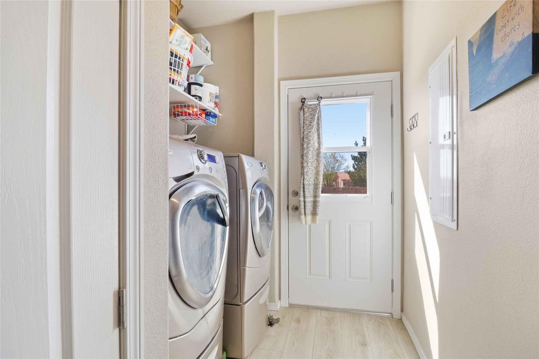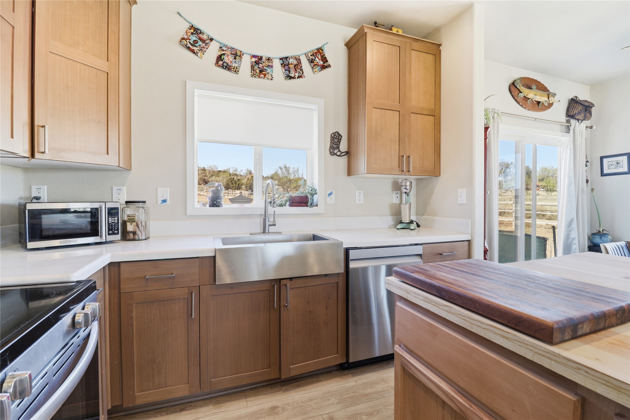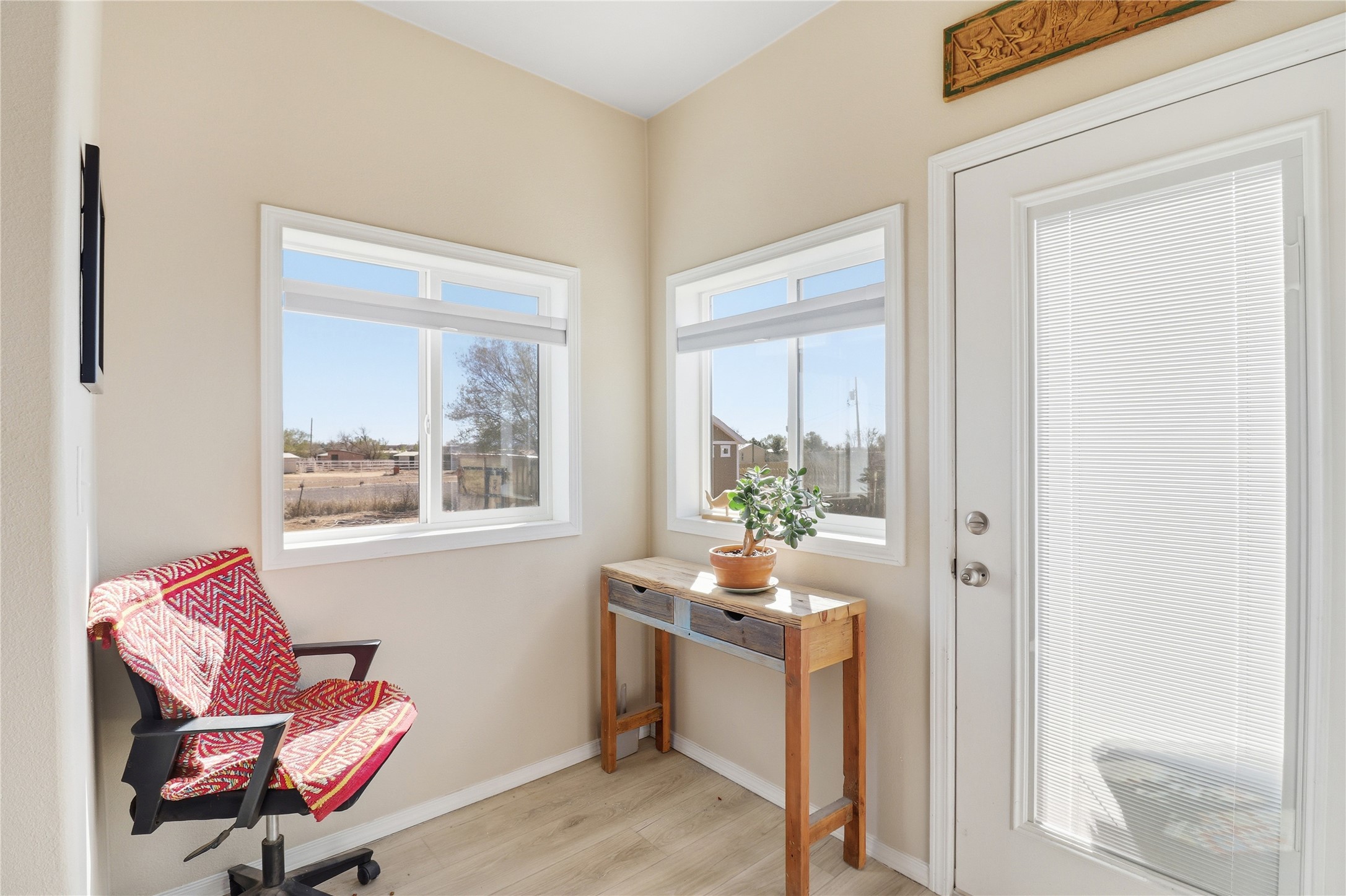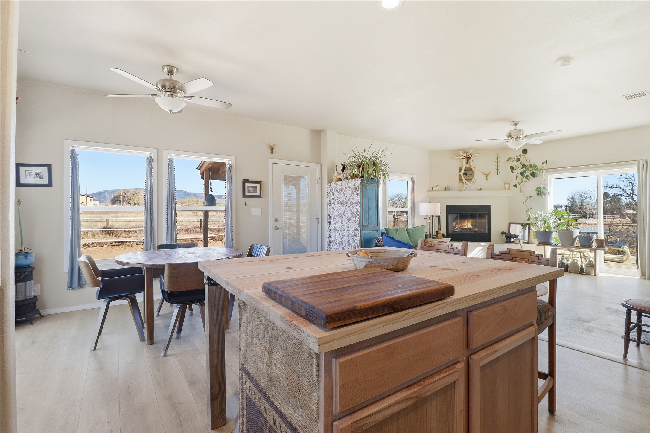 Rare opportunity to own a truly unique in-town horse property offering space, flexibility, and a touch of country living--just minutes from the Santa Fe Plaza.Set on 1.38 acres within city limits, this inviting 2-bedroom, 2-bath modular home offers a lifestyle that feels worlds away. Light pours through the home, highlighting 9-foot ceilings, a thoughtful floor plan, and clean, modern finishes with durable vinyl flooring throughout. The kitchen's tall cabinetry adds both elegance and functionality, while energy-efficient systems--including refrigerated air, and a high-efficiency water heater--ensure comfort year-round. A wood-burning fireplace brings warmth and a cozy Santa Fe touch.Step outside and discover a property that truly sets itself apart. Fully fenced and thoughtfully equipped, this horse-friendly property includes a 10x12 shed, horse panels (which convey), a chicken coop, 2 run-in sheds, and an RV power pedestal with nearby hydrant. A charming fish pond and inviting outdoor spaces create a peaceful setting to relax or entertain.Enjoy direct access to nature with pedestrian, equestrian, and utility easements leading to the nearby river trail--perfect for riding, walking, or simply enjoying the outdoors.Additional highlights include: Washer, dryer, and all appliances conveying (including microwave) Energy-efficient systems throughout Exterior-access deep crawlspace for added storage Shared well No HOAThis is a rare chance to own acreage, accommodate horses, and enjoy privacy--all while being close to the heart of Santa Fe. A truly special property with endless potential.