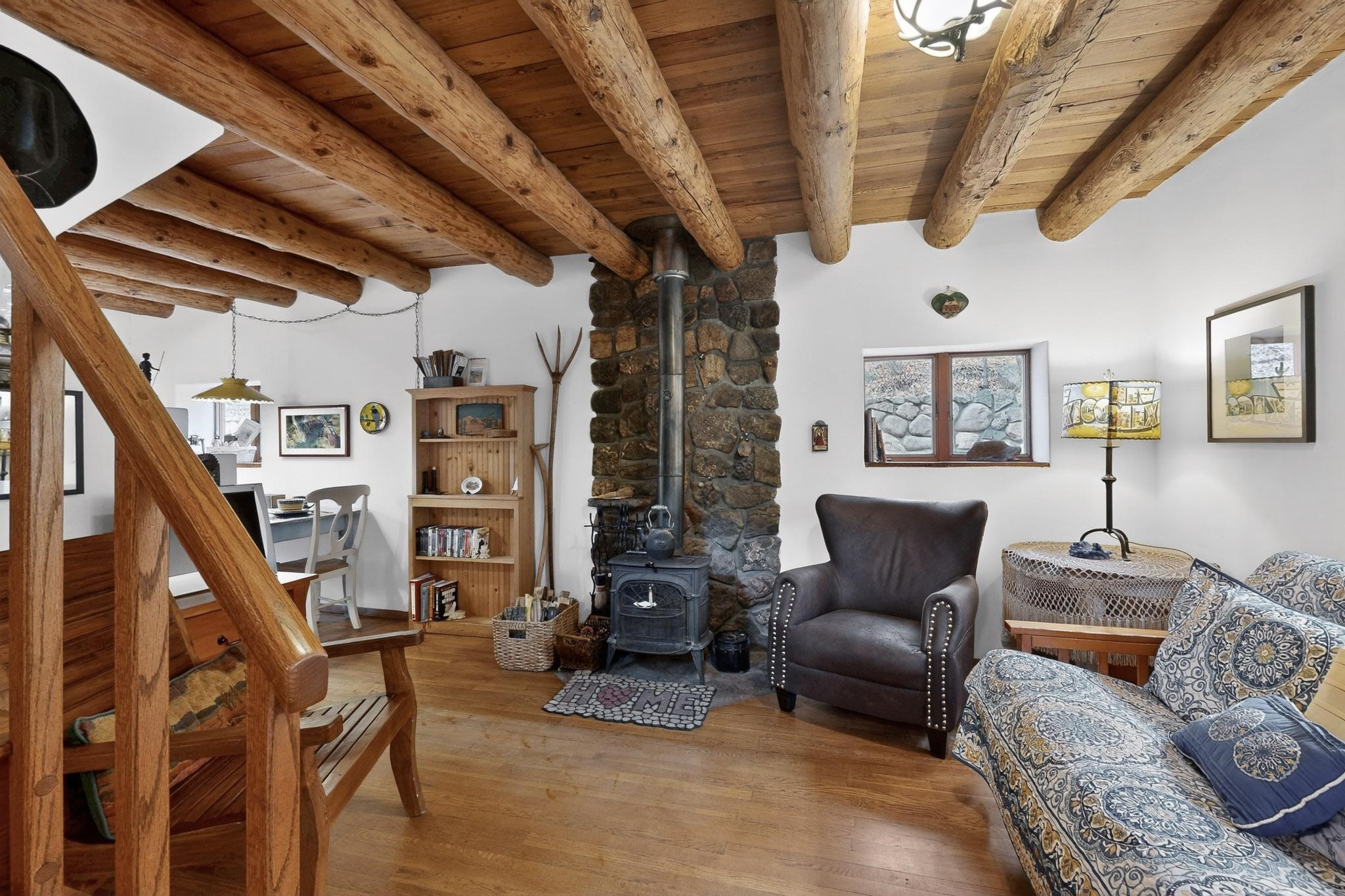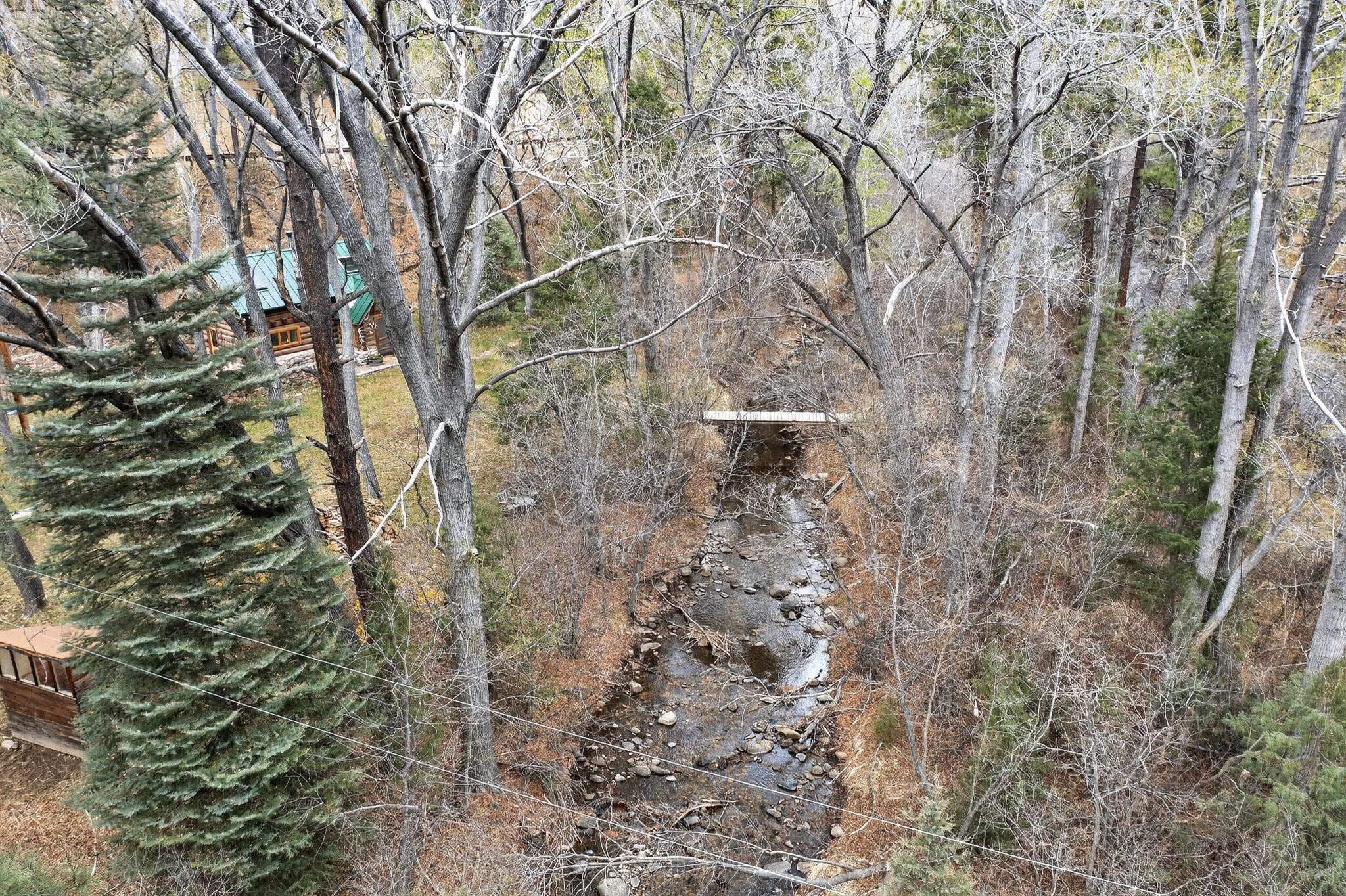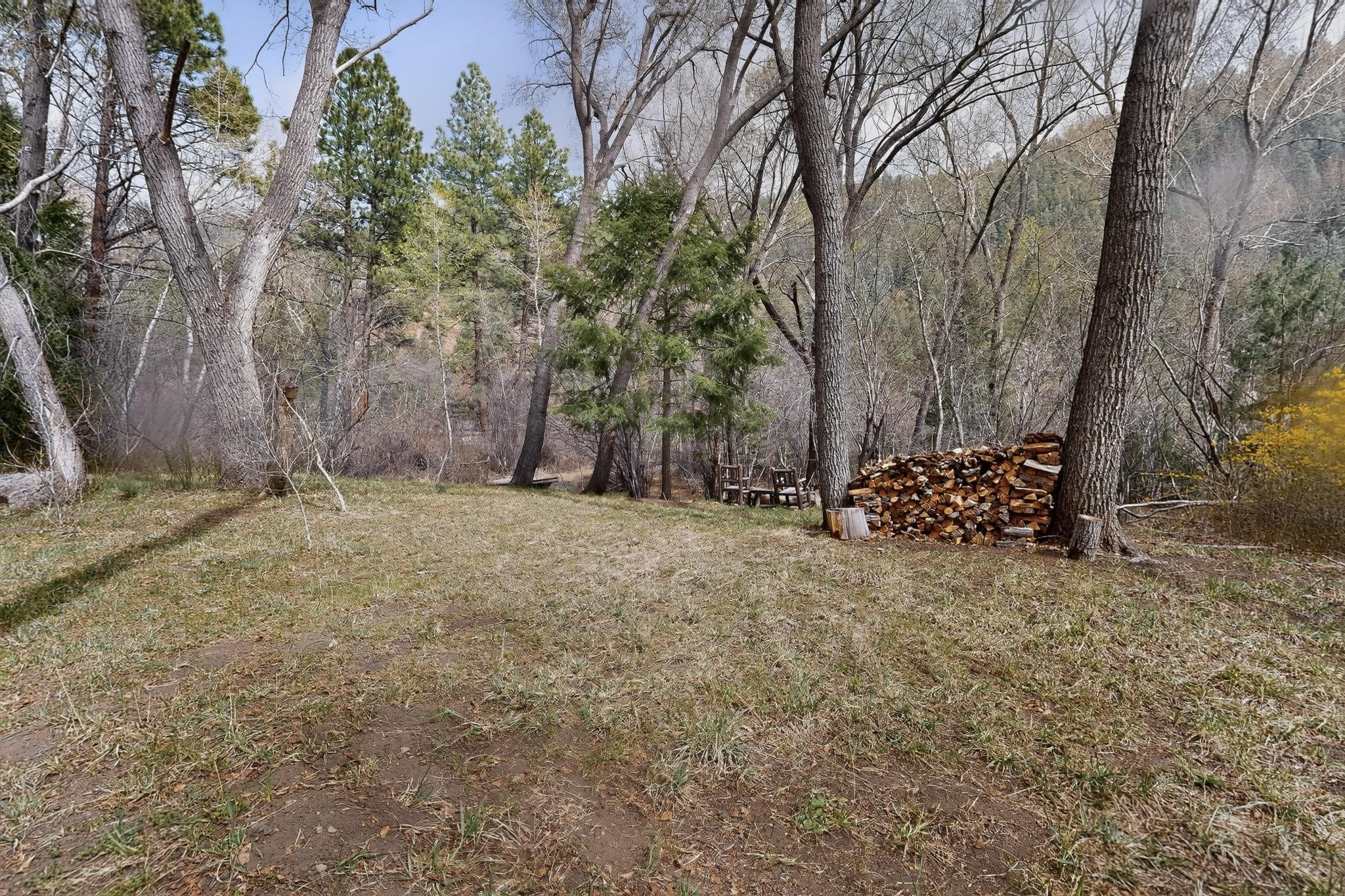 Adorable Storybook log cabin located on 360 +/- feet of Pecos River frontage, 10 miles above the Village of Pecos immediately before Windy Bridge. Properties of this type and quality are rarely offered for sale. The cabin has been an AirB&B offering for a number of years and our sellers are conveying domain names: PecosRiverCabin and Cabin on the Pecos. The setting includes a beautiful meadow, wooded bosque, healthy ponderosa pine, cotton willow, spruce trees and a large portion of an island accessed from a sweet bridge. The Pecos river frontage is significant with several openings for fishing and rapids towards the north end of the lot. The log cabin is quite stunning with a pitched pro-panel roof, skylights, river rock foundation, patio walls, livingroom, country kitchen, 1 bedroom, 1 bathroom and a laundry area. Improvements include new furnace, wood burning stove, new washer & dryer, upgraded electrical panel with additional GFI's in kitchen and bath, Centurylink land line telephone, on demand hot water heater, WiFi repeater in the garden house bringing the internet throughout the yard and patio. There is a separate 8'2 1/2"x 8' bonus building with electricity, solid entry door and view windows. All of the furniture, furnishings, tools, gardening supplies needed for a country get-a-way or for an income producing recreational retreat will be included with the purchase. There is no Home owner's Association just State and County regulations. The adjoining area to the kitchen could work for an expansion of the cabin footprint. The site is frequented by wildlife: deer, turkeys, skunks, fox, raccoons and occasionally a bear. For folks seeking a one of a kind river front destination property, please consider 1 McFerrin Taylor Rd, Pecos Canyon.