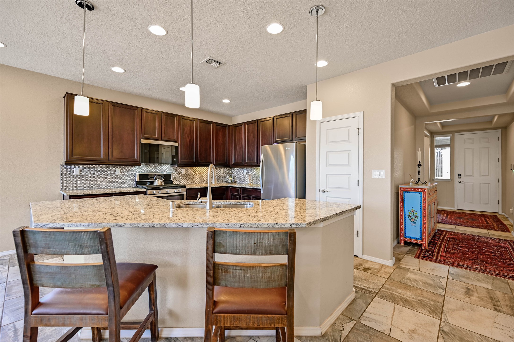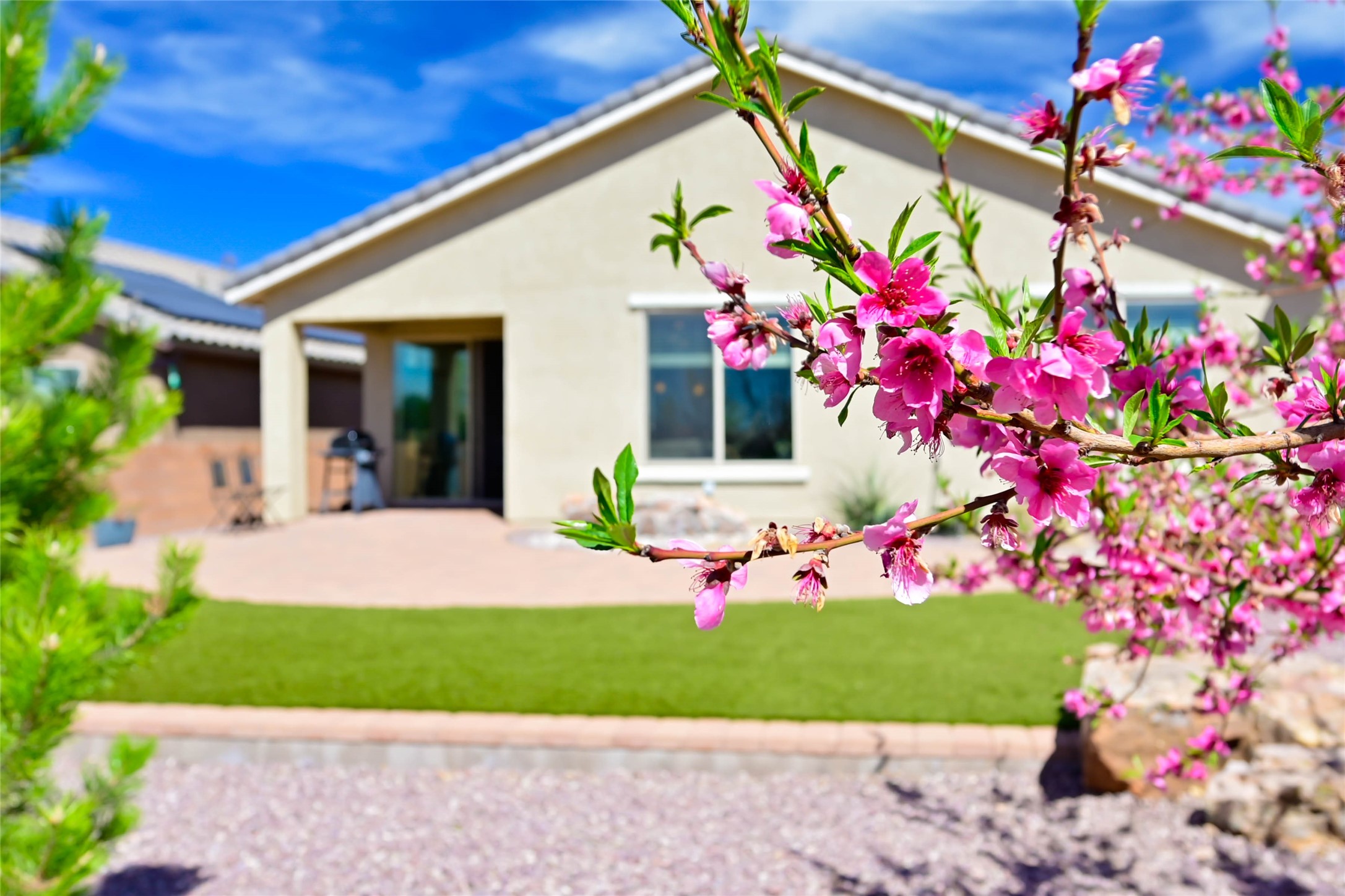 Modern Santa Fe Living with Designer Finishes & Exceptional Outdoor SpaceBuilt in 2019, this beautifully designed 3-bedroom, 2-bath contemporary home offers the perfect blend of modern construction, energy efficiency, and Santa Fe lifestyle in a desirable, newer neighborhood.Step inside to an open-concept floor plan with abundant natural light, seamlessly connecting the living, dining, and kitchen areas--ideal for entertaining or everyday living. The thoughtfully designed layout delivers both comfort and functionality with clean, modern finishes throughout.Enjoy the benefits of energy-efficient construction and an on-demand tankless water heater, providing continuous hot water and lower utility costs.The true highlight is the professionally landscaped backyard oasis, featuring: A tranquil bubbling rock water feature Low-maintenance turf area (perfect for pets and play) Mature landscaping for added privacy and beauty This outdoor space is ideal for relaxing, entertaining, or enjoying Santa Fe's incredible year-round climate.Located just minutes from shopping, dining, and daily amenities, this home offers both convenience and quiet residential living--a rare combination in today's market.