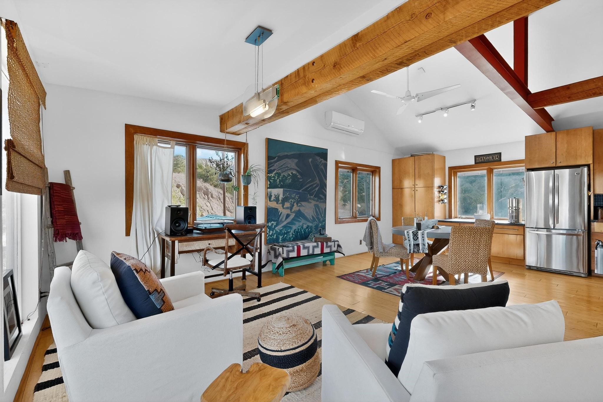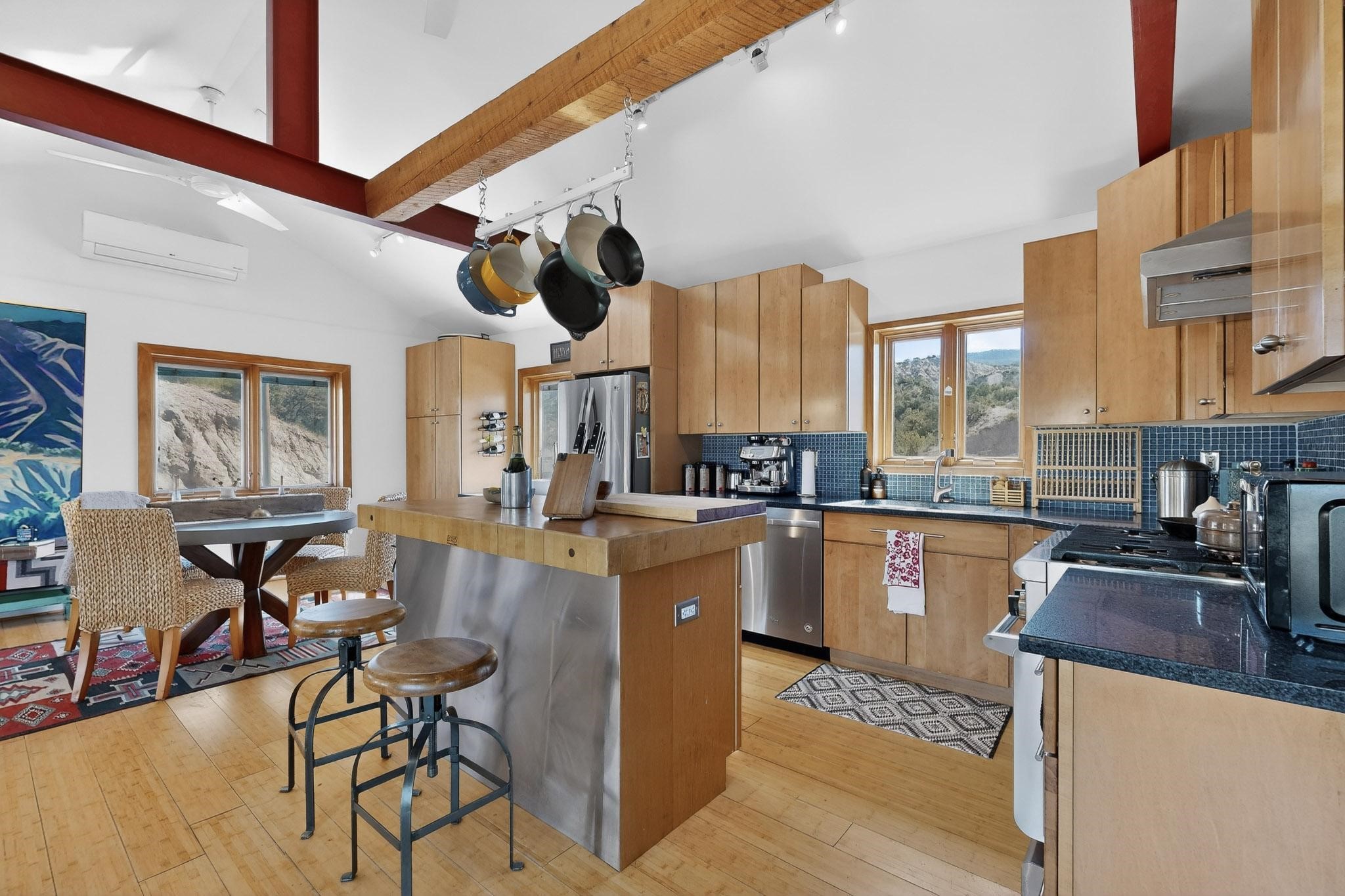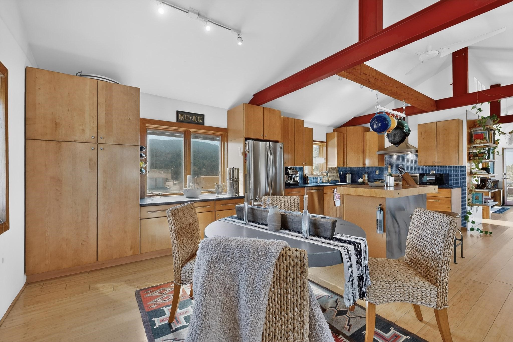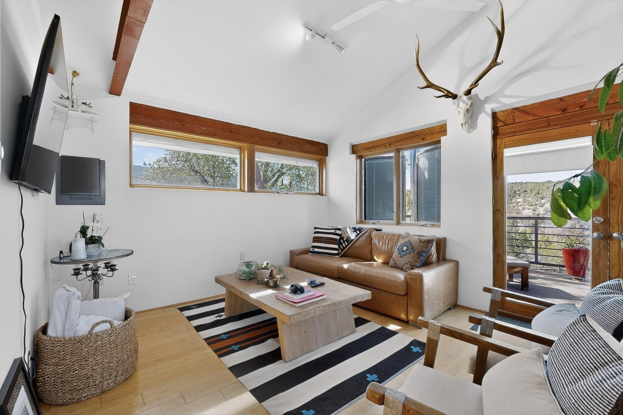 Nestled in the scenic, tree-covered hills of Chupadero. Enjoy this tastefully eclectic hideaway just 18 minutes from downtown Santa Fe. This home is flooded with natural light and spectacular views in every direction. Minutes from Rancho Encantado, Tesuque Village Market and El Nido. This is a home you must come and experience!