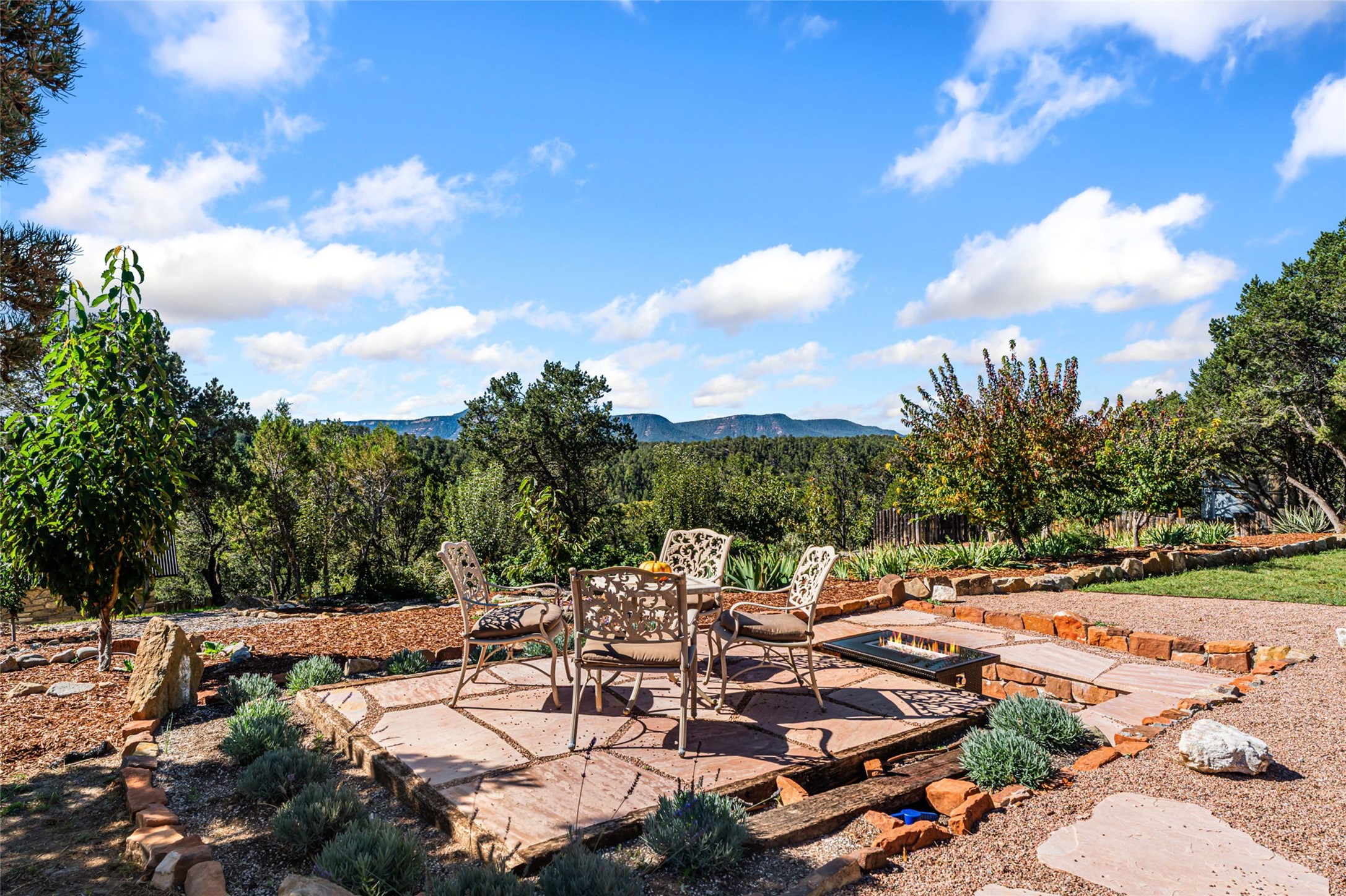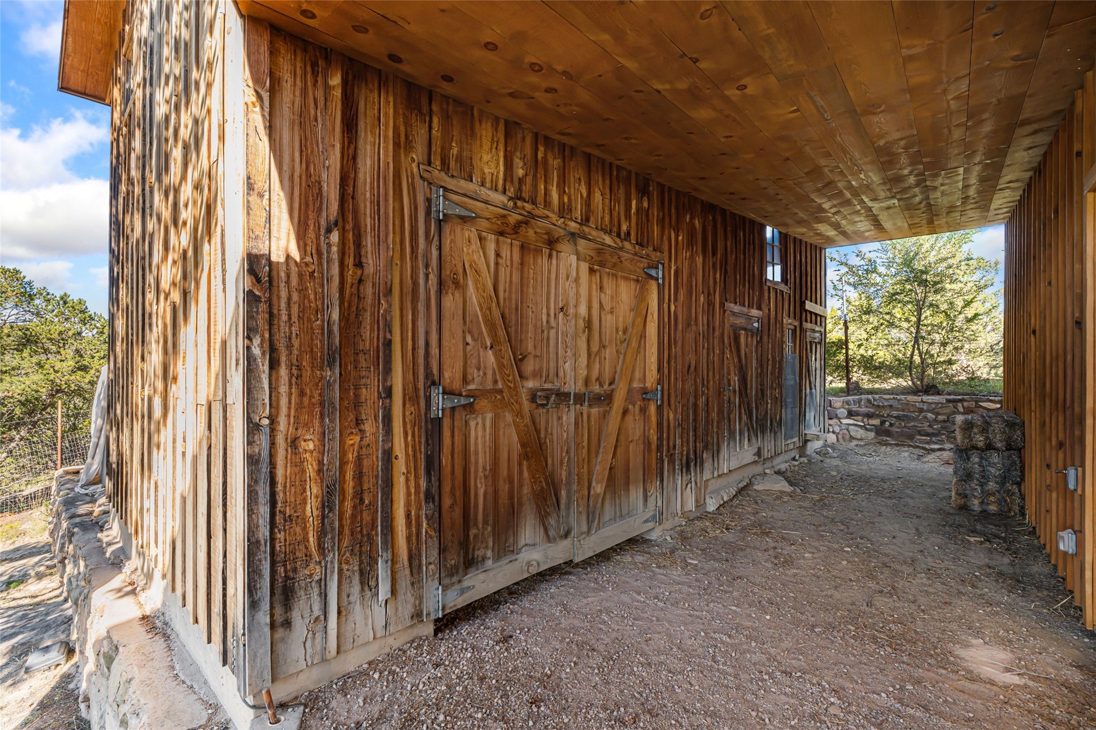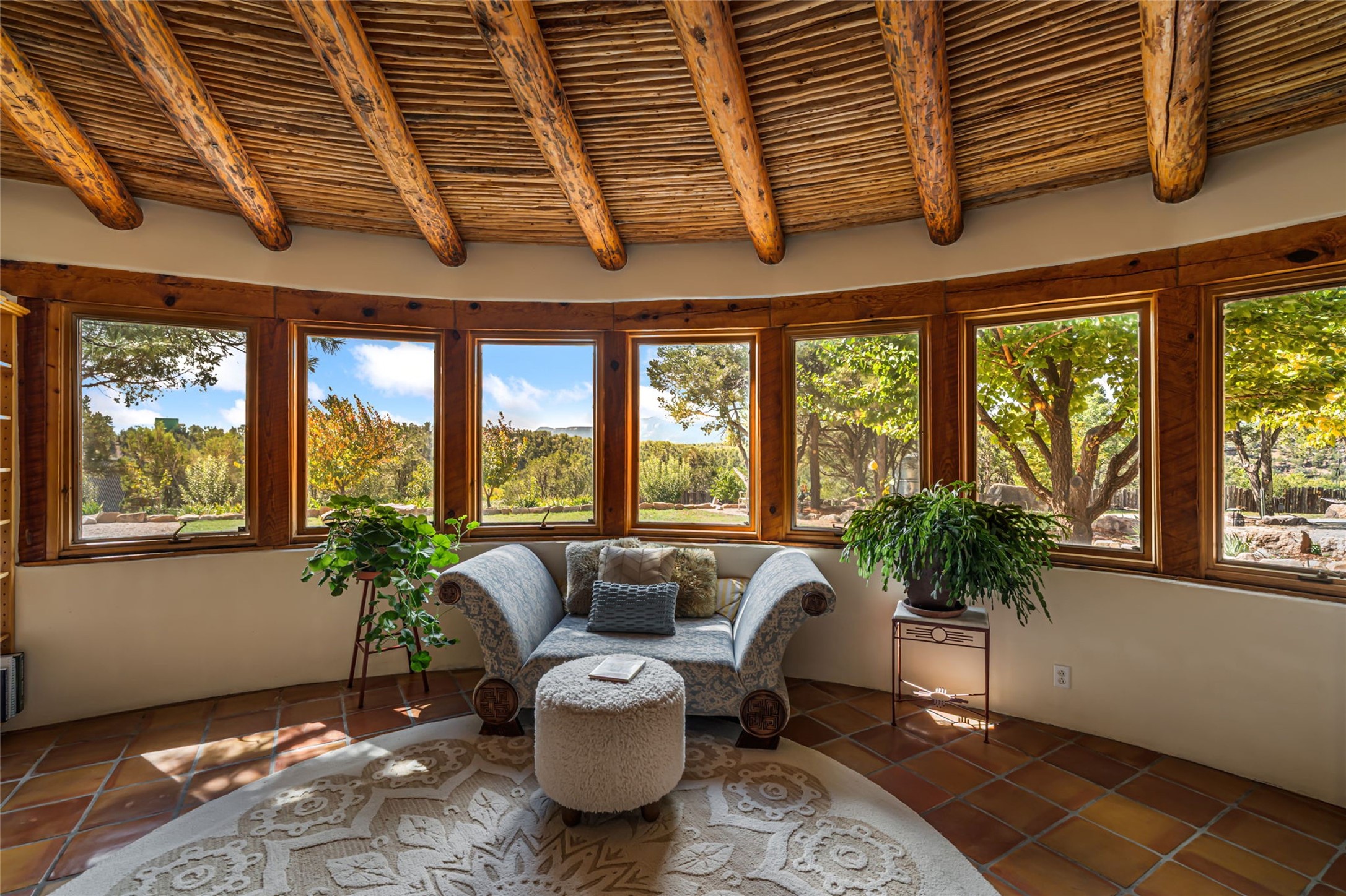 Set on nearly four acres 30 minutes from Santa Fe and only minutes from the Pecos River, 16 Hubbard Hill offers a profound and immediate sense of peace. The property overlooks serene Monastery Lake and borders more than one thousand acres of land belonging to the Benedictine Monastery, creating extraordinary privacy and an uninterrupted natural backdrop. This extraordinary estate was originally the personal residence and apex creation of renowned custom builder Richard Roybal, a true Northern New Mexico artisan whose craftsmanship is visible in every detail. Hand inlaid wood floors, sculpted stonework, vigas and latillas, aspen and willow ceilings and generous windows create a warm, soulful environment filled with natural light. The home has been thoughtfully expanded and impeccably maintained ever since, evolving into a property that supports both refined living and meaningful self-reliance.The current owners have continued this legacy with significant upgrades designed for long-term comfort and sustainability. A powerful solar system with a three-plus-day battery backup provides dependable energy independence. Improvements to water and power systems were completed with durability and ease of living in mind. New fruit trees and hundreds of berry plants complement the existing mature plantings, contributing to a landscape that functions as a flourishing food forest. Landscaping throughout the property has been refined to minimize maintenance, maximize automation and support a thriving ecosystem for humans, birds and bees. A private gate marks the entrance to the estate, and the grounds are fully fenced to accommodate dogs, making the land as welcoming as it is expansive.One of the most exceptional features of the estate is the expansive detached garage and south-facing studio, where dramatic glass garage doors fill the space with natural light. This luminous building is ideal for an artist, maker, healer or collector and functions beautifully as a workshop, gallery, creative studio or retreat space.The greenhouse beautifully supports a lifestyle of intentional, sustainable living. It includes a large hydroponic water enclosure, solar-operated fans, automated roof ventilation and raised beds with full drip irrigation, all designed for maximum growing efficiency and year-round cultivation.The fully appointed guest house is a complete home of its own, not a simple casita. High ceilings and large windows create an airy, spacious feel, while thoughtfully placed skylights bring in abundant natural light. Heated tile floors throughout add comfort and warmth, and the full amenities offer exceptional flexibility for hosting, multigenerational living or generating rental income.With approximately eight thousand square feet of living and studio space, exceptional craftsmanship, modern enhancements and a landscape that feels both magical and deeply grounding, 16 Hubbard Hill stands as a truly singular offering. It is a home built to endure, expanded with care and aligned with a lifestyle that values beauty, creativity and self-reliance. A rare sanctuary with endless potential.
