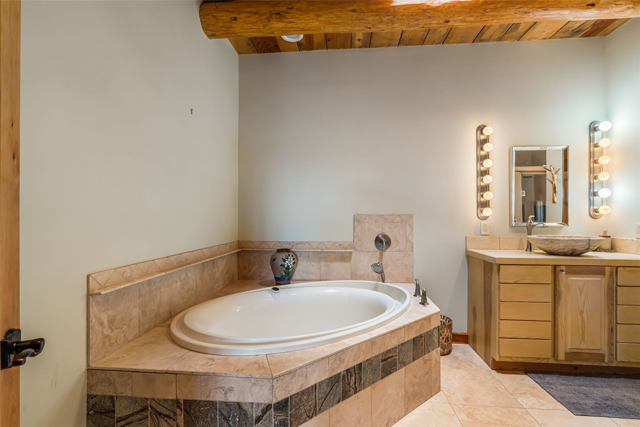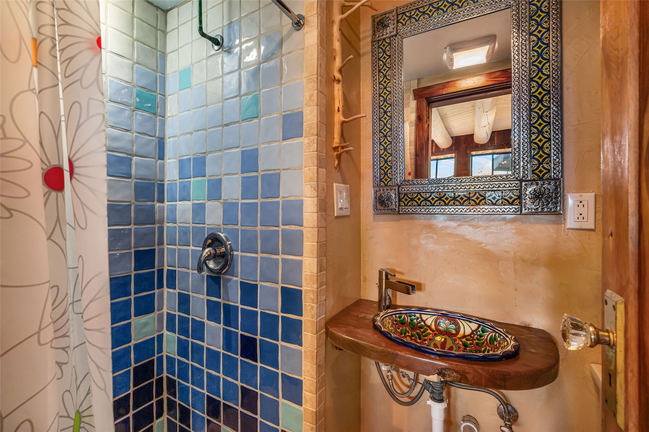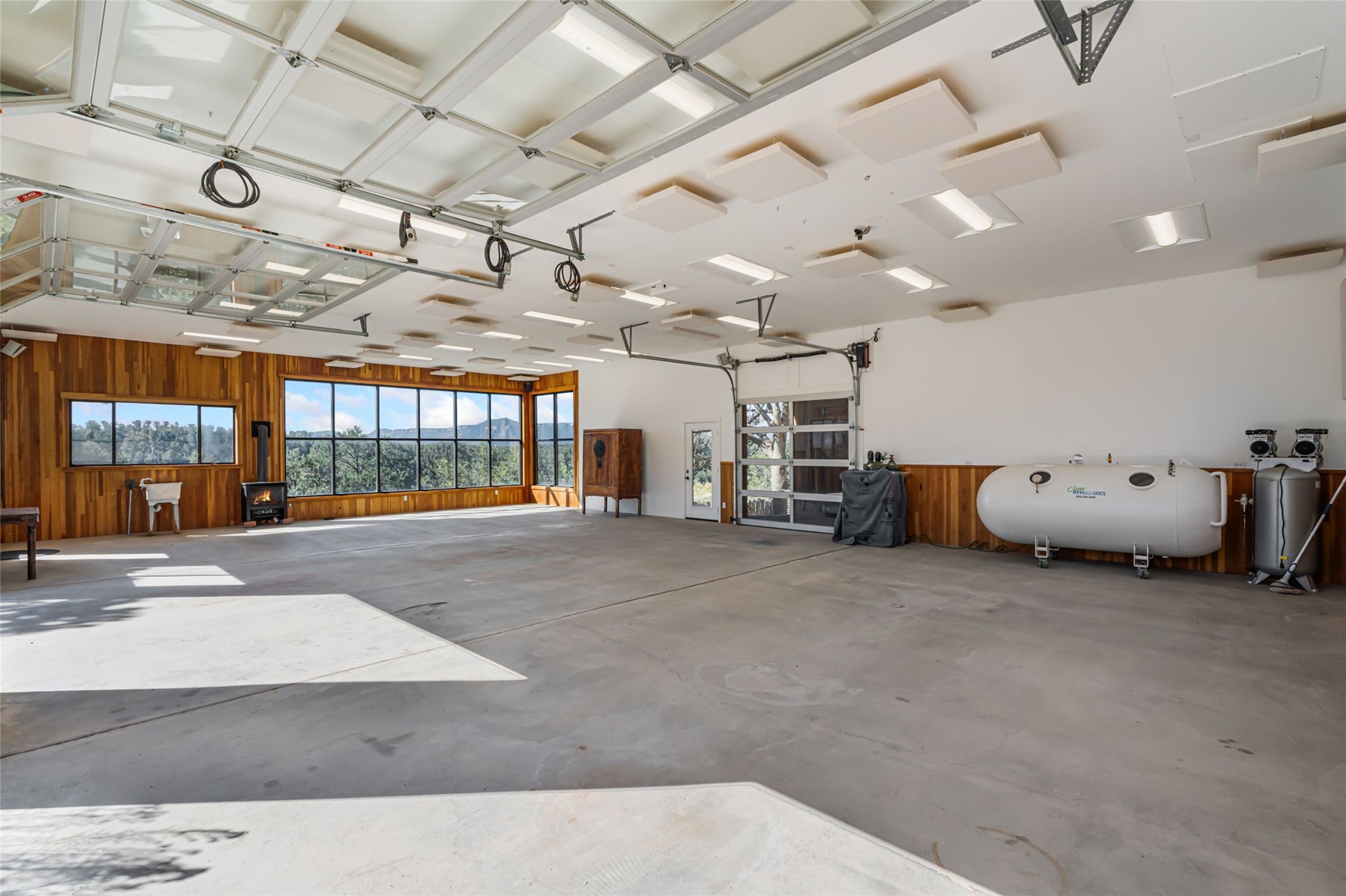 Set on nearly four acres 30 minutes from Santa Fe and only minutes from the Pecos River, 16 Hubbard Hill offers a profound and immediate sense of peace. The property overlooks serene Monastery Lake and borders more than one thousand acres of land belonging to the Benedictine Monastery, creating extraordinary privacy and an uninterrupted natural backdrop. This extraordinary estate was originally the personal residence and apex creation of renowned custom builder Richard Roybal, a true Northern New Mexico artisan whose craftsmanship is visible in every detail. Hand inlaid wood floors, sculpted stonework, vigas and latillas, aspen and willow ceilings and generous windows create a warm, soulful environment filled with natural light. The home has been thoughtfully expanded and impeccably maintained ever since, evolving into a property that supports both refined living and meaningful self-reliance.The current owners have continued this legacy with significant upgrades designed for long-term comfort and sustainability. A powerful solar system with a three-plus-day battery backup provides dependable energy independence. Improvements to water and power systems were completed with durability and ease of living in mind. New fruit trees and hundreds of berry plants complement the existing mature plantings, contributing to a landscape that functions as a flourishing food forest. Landscaping throughout the property has been refined to minimize maintenance, maximize automation and support a thriving ecosystem for humans, birds and bees. A private gate marks the entrance to the estate, and the grounds are fully fenced to accommodate dogs, making the land as welcoming as it is expansive.One of the most exceptional features of the estate is the expansive detached garage and south-facing studio, where dramatic glass garage doors fill the space with natural light. This luminous building is ideal for an artist, maker, healer or collector and functions beautifully as a workshop, gallery, creative studio or retreat space.The greenhouse beautifully supports a lifestyle of intentional, sustainable living. It includes a large hydroponic water enclosure, solar-operated fans, automated roof ventilation and raised beds with full drip irrigation, all designed for maximum growing efficiency and year-round cultivation.The fully appointed guest house is a complete home of its own, not a simple casita. High ceilings and large windows create an airy, spacious feel, while thoughtfully placed skylights bring in abundant natural light. Heated tile floors throughout add comfort and warmth, and the full amenities offer exceptional flexibility for hosting, multigenerational living or generating rental income.With approximately eight thousand square feet of living and studio space, exceptional craftsmanship, modern enhancements and a landscape that feels both magical and deeply grounding, 16 Hubbard Hill stands as a truly singular offering. It is a home built to endure, expanded with care and aligned with a lifestyle that values beauty, creativity and self-reliance. A rare sanctuary with endless potential.