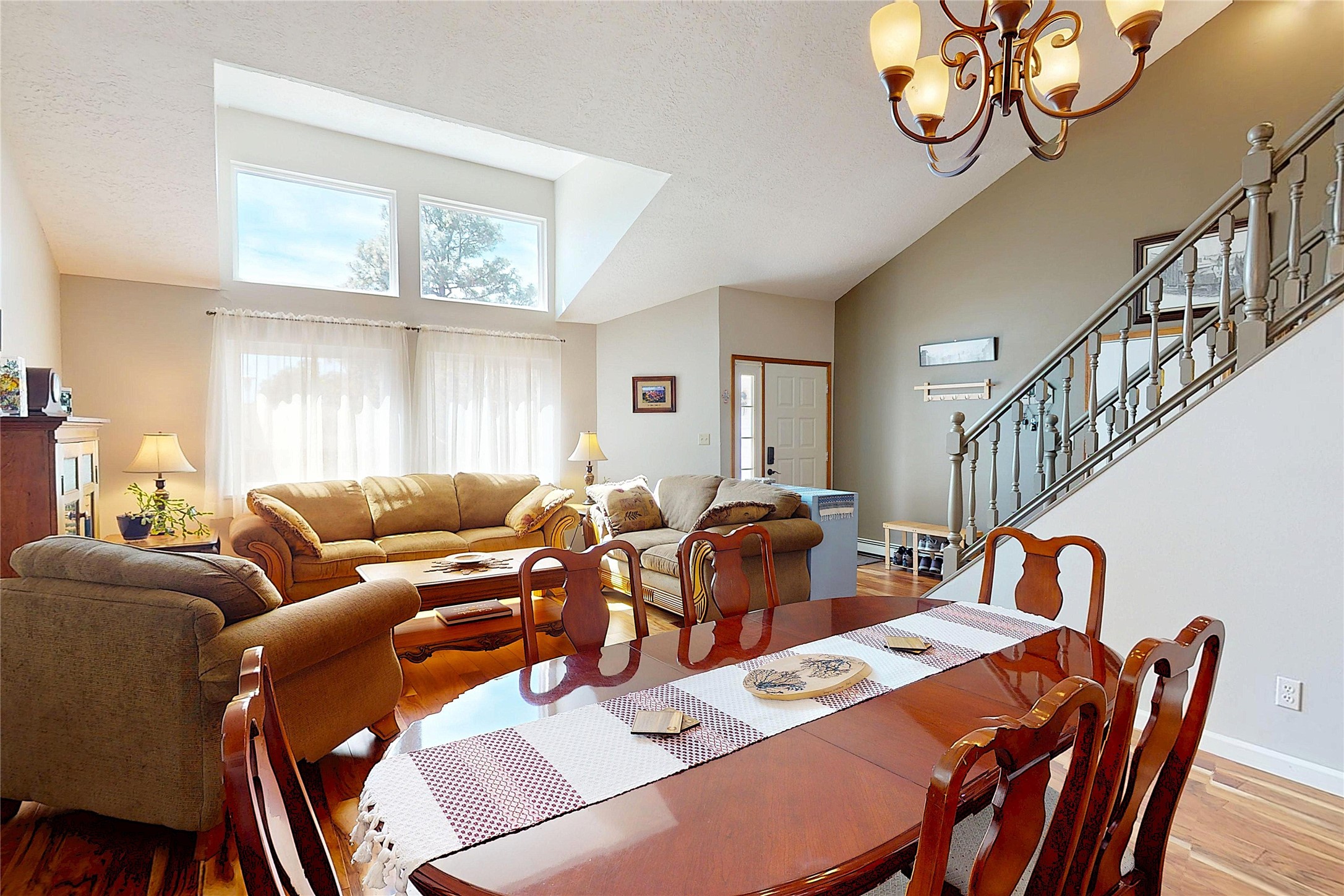Located near the end of North Mesa, this beautifully maintained two-story home offers a thoughtful blend of comfort, efficiency, and flexible living space. With three bedrooms plus a versatile loft, the floor plan easily adapts to your needs, whether as a home office, reading retreat, workout area, or multi-use space. The light-filled main level features soaring south-facing windows that bring in warmth and natural light throughout the day, an ideal setup for both comfort and energy efficiency. Beautiful new wood flooring runs throughout the first floor, adding warmth and a clean, modern feel. The updated kitchen offers ample storage and opens seamlessly to the family room, where a cozy pellet stove creates the perfect gathering space during cooler months. Formal living and dining areas provide additional room for entertaining or everyday living. Upstairs, the inviting primary suite includes an updated bath with a beautifully finished shower. Two additional bedrooms, a full bath, and the spacious loft complete the upper level. Outside, the yard features easy-care landscaping, towering ponderosa pines, and raised garden beds. Enjoy outdoor living on the patio or relax in the charming gazebo. The two-car garage offers abundant overhead storage. This home also features newer carpet and paint, along with updated bathrooms. Engineered acacia wood flooring was added in 2023, and the kitchen was updated with new counters and cabinets the same year. Windows were replaced in 2018. Conveniently located near the middle school, dog park, horse stables, playground, and tennis courts. With easy access to trails and all that North Mesa offers, this home is ready for you to move in and enjoy.
