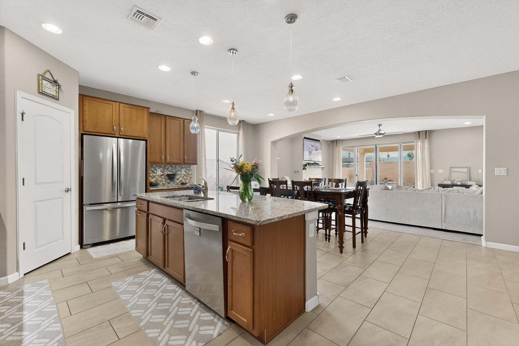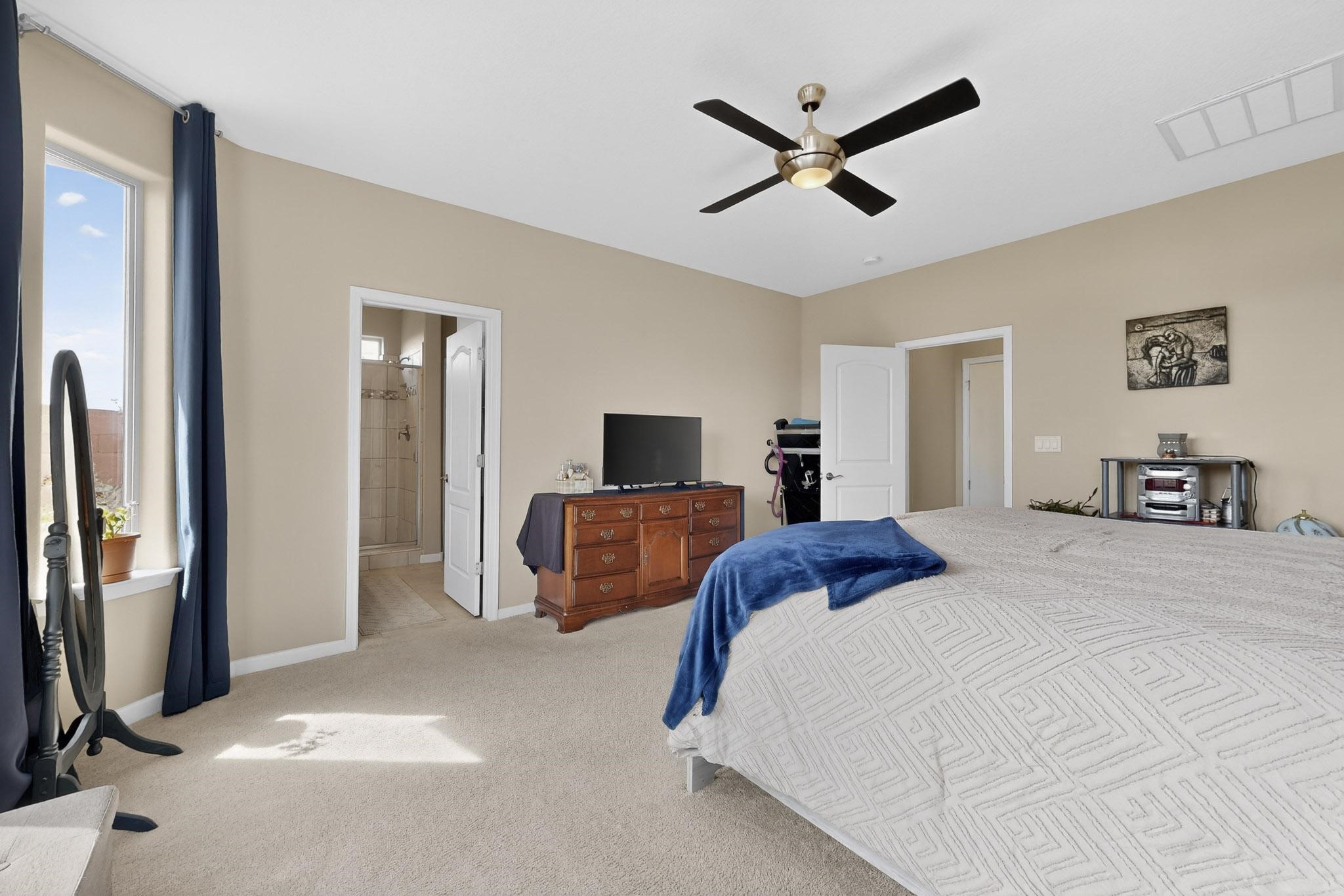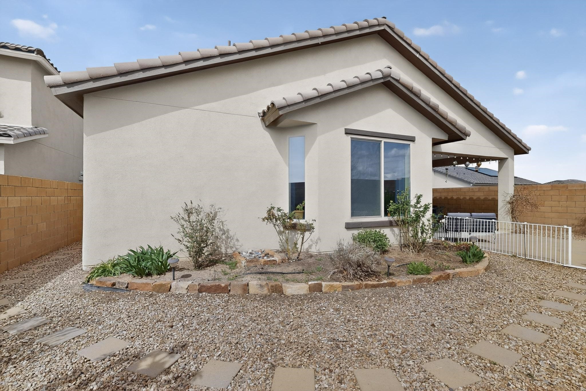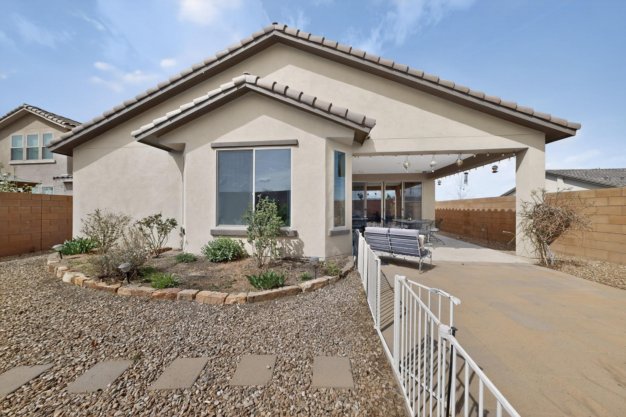 Beautiful, Pulte home, built in 2019, in the desirable Las Soleras Subdivision, that's near restaurants, shopping and Presyterian Hospital! This stunning, single level home has 3 bedrooms + an office/exercise room, 1 3/4 baths, about 2188 square feet, on a fantastic, premium lot with an extra long driveway to park about 6 vehicles! The 2-car garage is oversized and has plenty of storage for your holiday decorations, board games, off season clothing or anything you may need to store. Inside you'll enjoy the open floor plan, an updated kitchen with granite island and countertops, lots of cabinets and stainless steel appliances. The living room is spacious and includes a wonderful gas fireplace for the cool evenings and even has some mountain views! The master bedroom is also spacious, has access to the landscaped backyard and a has large, bay window to enjoy the southern sun! You'll love the upgraded master bath, that also has granite, a walk in shower and a large walk in closet. The additional 2 bedrooms are separate from the master, and include a sweet, full bath. Additional upgrades include central refrigerated A/C, ceiling fans, a tankless hot water heater and did I mention the mountain views?? Enjoy the beautiful Santa Fe weather under the lovely portal that includes a high wall for privacy! This home comes with many upgrades, lots of natural light and is ready for it's new owners! Schedule your showing today - you won't be disappointed!